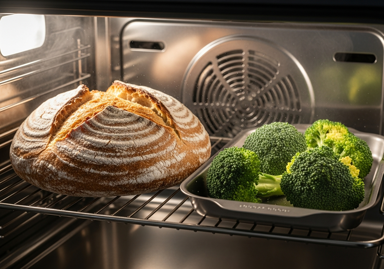 Pieczenie w piekarniku parowym sprawia, że chleb i inne wypieki są bardziej wilgotne, lepiej rosną i mają piękną, chrupiącą skórkę. Para utrzymuje wilgoć w cieście, co opóźnia tworzenie się twardej skórki i pozwala ciastu maksymalnie wyrosnąć (tzw. oven spring). W efekcie dostajesz puszysty miękisz i cienką, chrupiącą, lśniącą skórkę. Ten proces wspiera też żelatynizację skrobi na powierzchni, co w połączeniu z reakcją Maillarda, przyczynia się do doskonałego smaku i aromatu.
