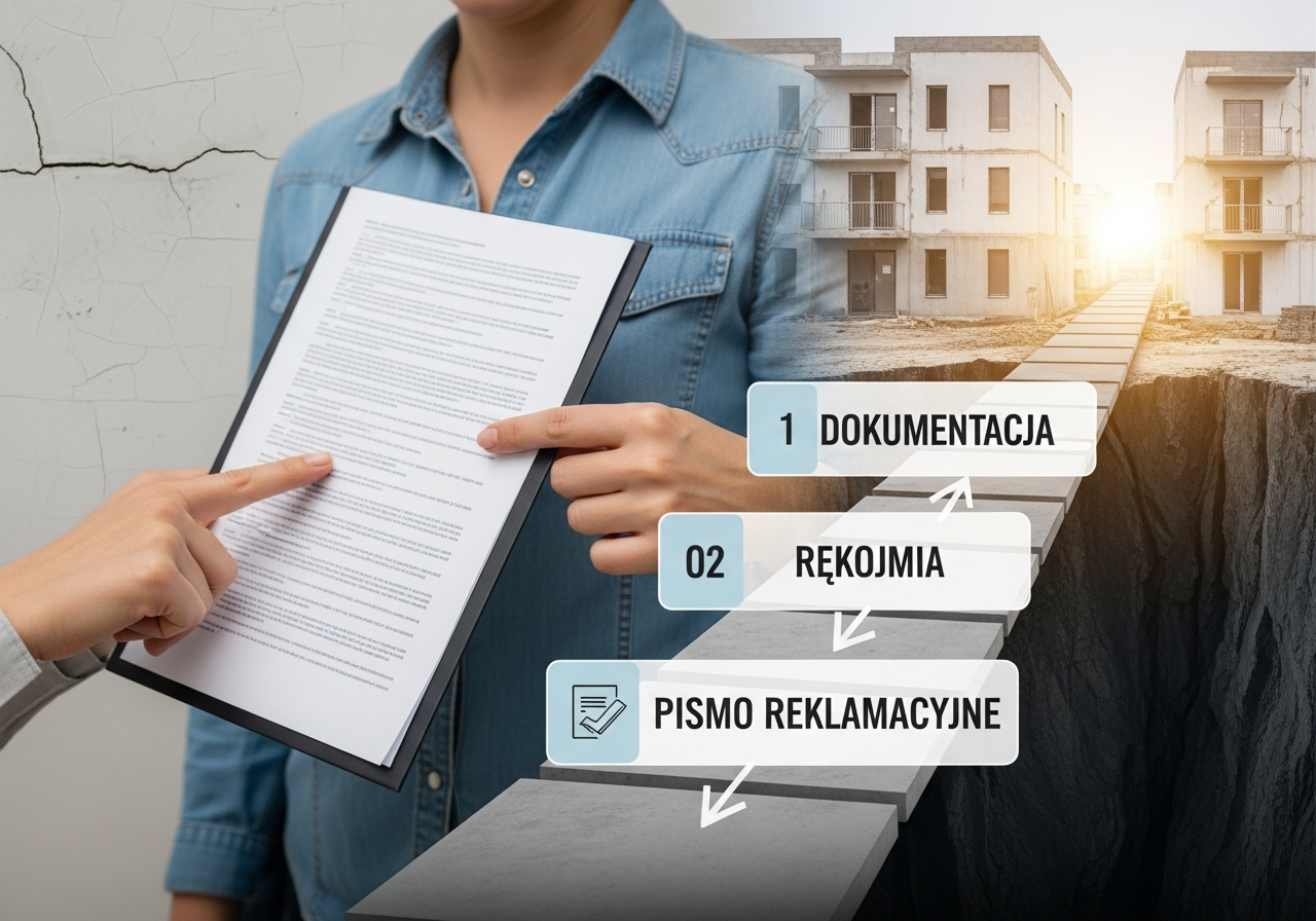 | 2. Udokumentuj wadę | Rób zdjęcia i filmy, zbierz dowody. | Ujęcia ogólne i zbliżenia. Rozważ rzeczoznawcę przy poważnych wadach. |