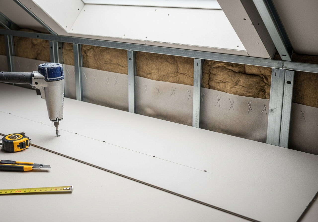 Jak precyzyjnie ciąć i montować płyty gipsowe wokół okna dachowego?
