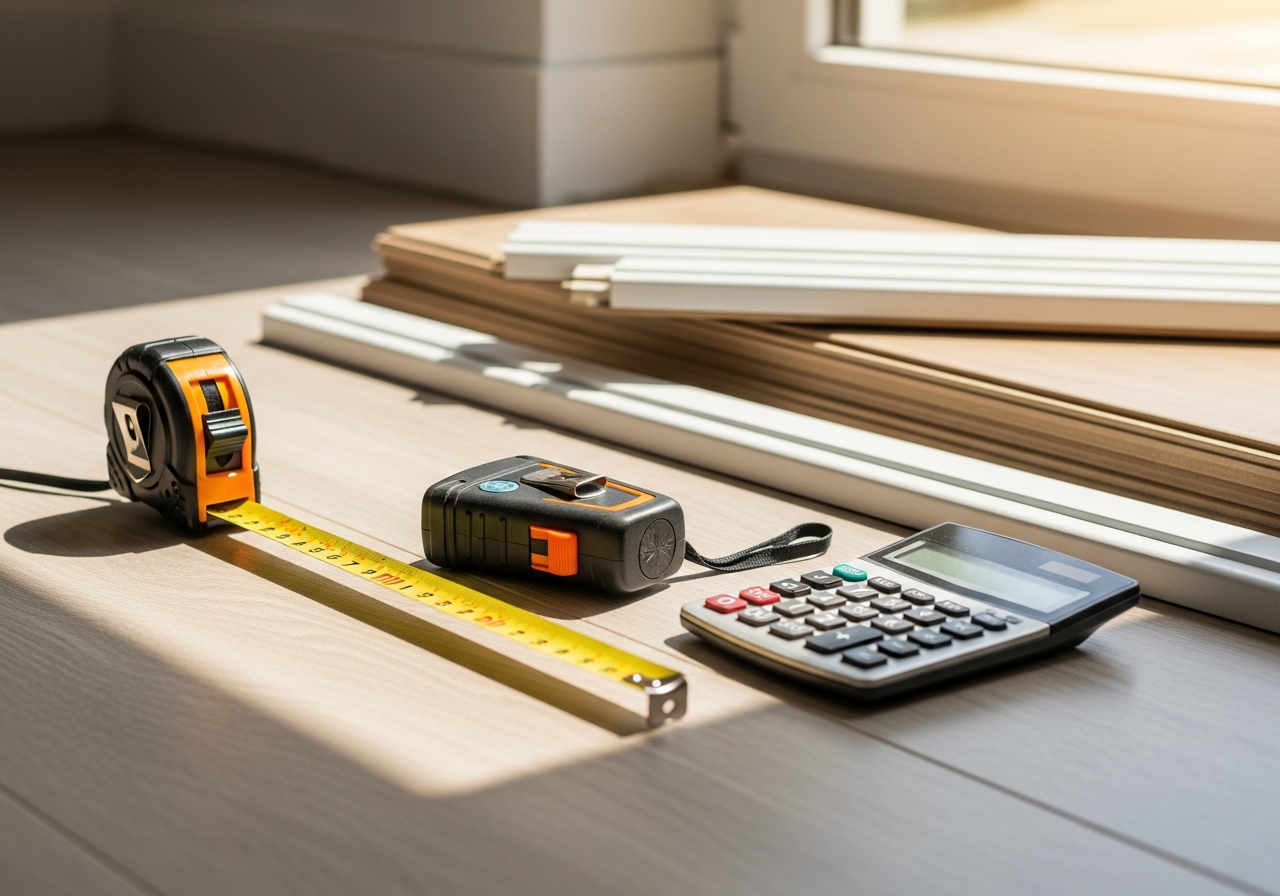 Jakie zaawansowane narzędzia pomiarowe wspierają precyzję w obliczaniu ilości paneli podłogowych i listew przypodłogowych?
